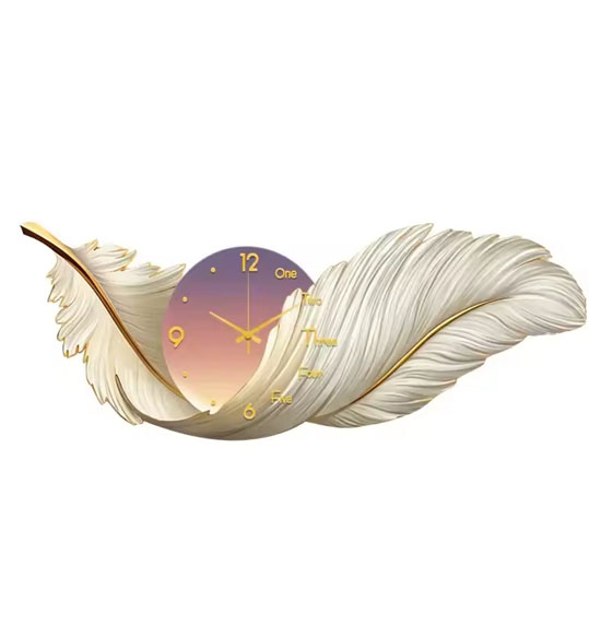 Wall Clock  Art Clocks Decor Picture Silent Living Room Wall Feather Decoration Watch Renoj De Pare Home Decoration